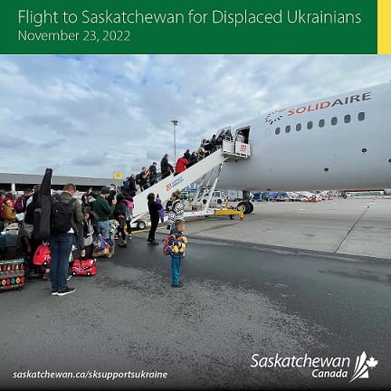Today, Immigration and Career Training Minister Jeremy Harrison announced that registration is now open for the fourth flight carrying Ukraine refugees to Saskatchewan. Once again, the flight is being arranged in partnership with the humanitarian organizations Solidaire and Open Arms. It is expected to arrive in Saskatoon on November 23.