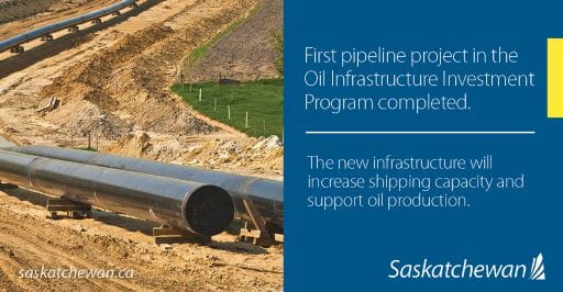 Today, the Government of Saskatchewan announced the first completed, in-service pipeline project under the provincial Oil Infrastructure Investment Program (OIIP).