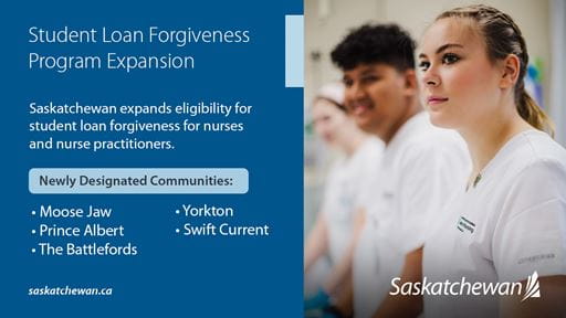 To learn more about the Saskatchewan Student Loan Forgiveness for Nurses and Nurse Practitioners, visit https://www.saskatchewan.ca/residents/education-and-learning/student-loans/loan-forgiveness-for-nurses-and-nurse-practitioners.