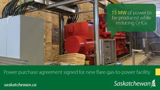 “This project will use flare gas that would otherwise have been emitted into the atmosphere to create low-carbon baseload electricity,” said Don Morgan, Minister Responsible for SaskPower. “This is a win-win, as the oil and gas operation can generate revenue and reduce its exposure to the carbon tax, while contributing to the Province of Saskatchewan and SaskPower’s efforts to reduce greenhouse gas emissions.”