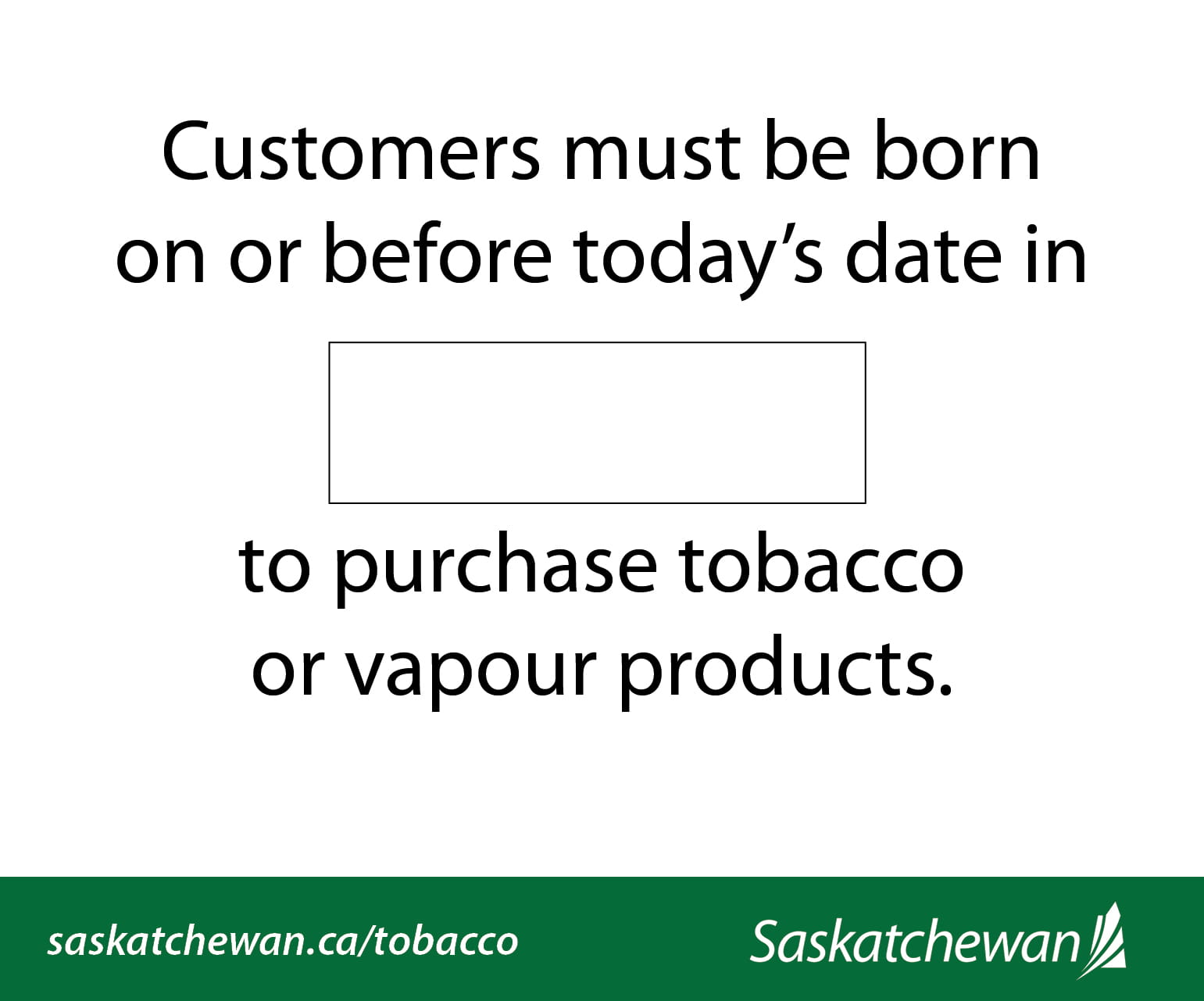 Effective February 1, 2024, the legal age to purchase tobacco and vapour products in Saskatchewan increased from 18 to 19.