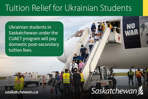 The Government of Saskatchewan will make it easier for Ukrainian students who arrived in the province over the past year to pursue post-secondary education. The province will provide funding to ensure that those who came to Saskatchewan under the Canada-Ukraine Authorization for Emergency Travel (CUAET) program pay domestic tuition rates rather than international rates.